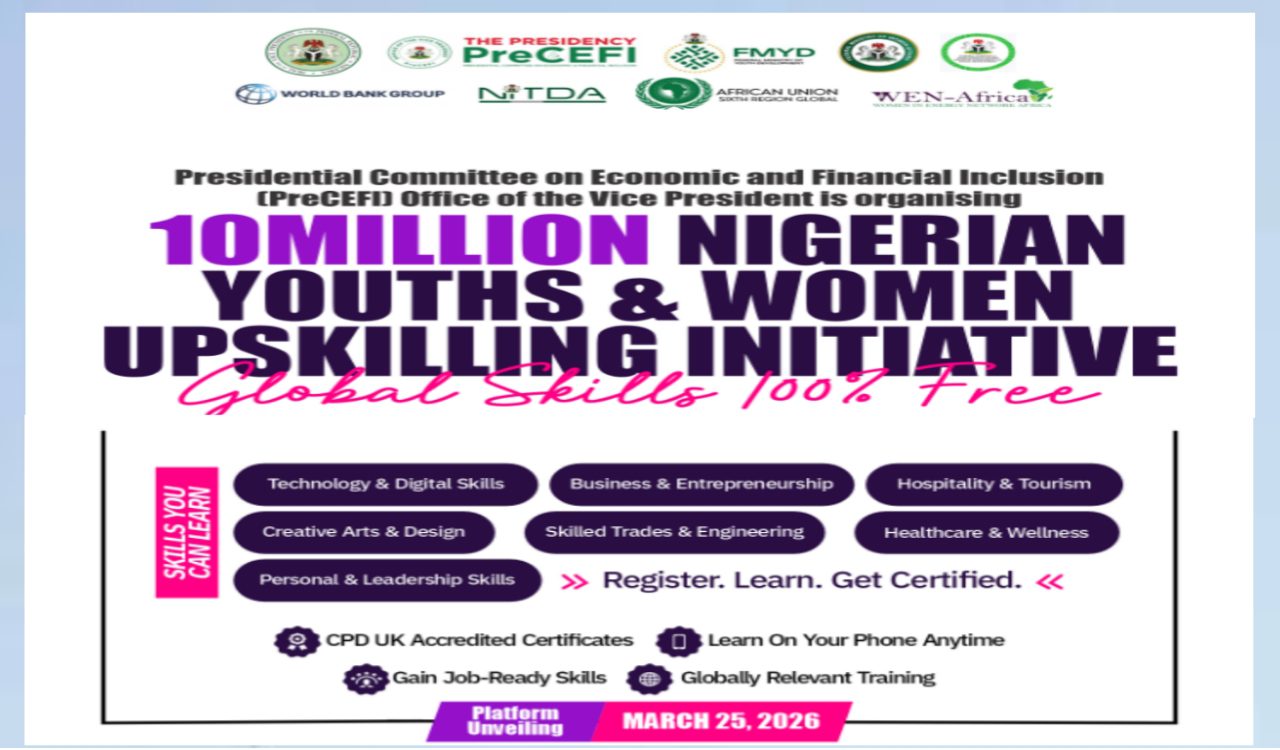 The Federal Government of Nigeria has officially launches a nationwide upskilling programme to train and empower 10 million Nigerian youths and women with practical and in demand skills at no cost across Nigeria.